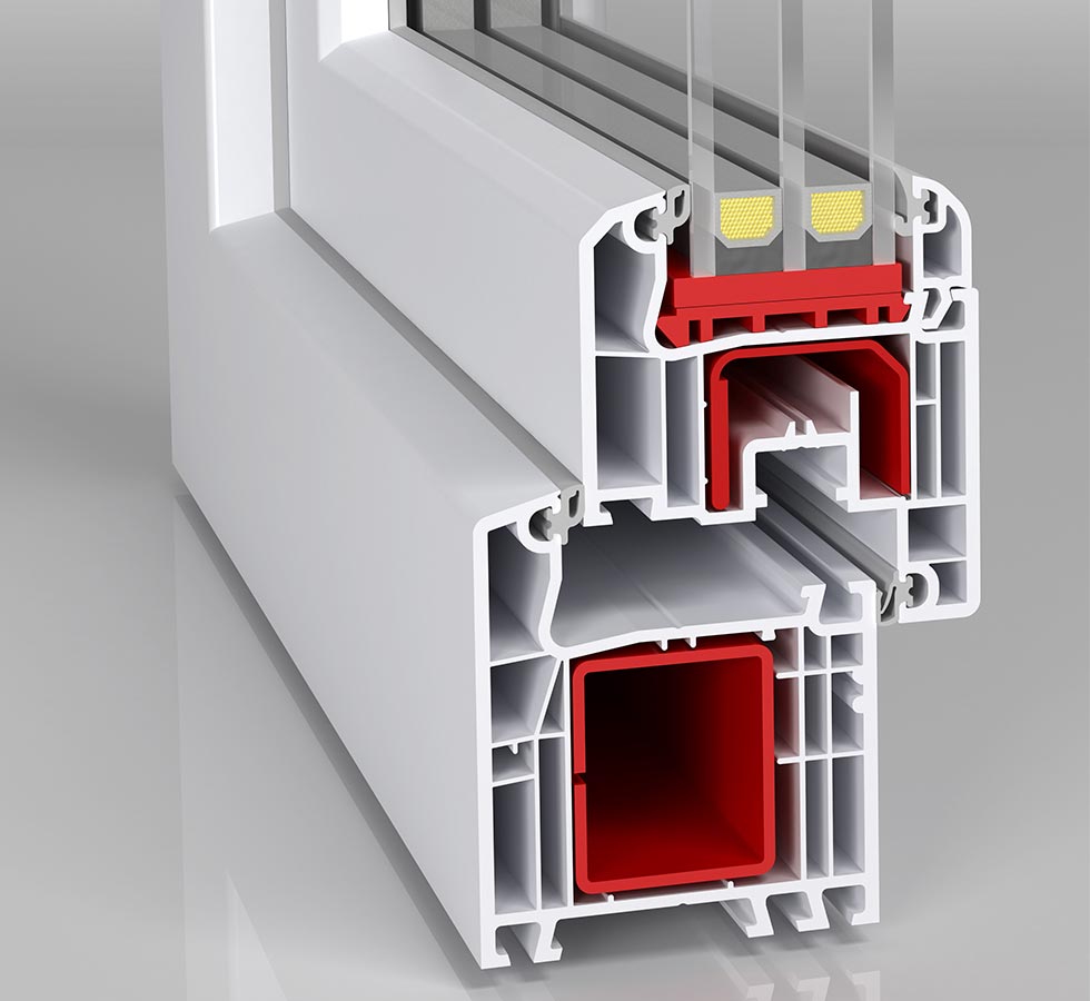 - čelična ojačanja u profilu omogućuju stabilnost i kod prozorskih elemenata velikih dimenzija